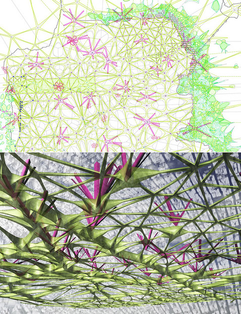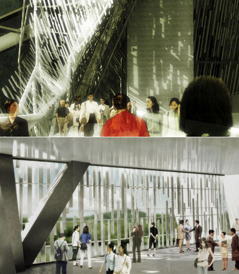 Сроки реализации этого замысла не названы, как и предполагаемые затраты (иллюстрация Studio Shift). Жутковатое впечатление производит это сооружение. Словно мёртвое дерево с обрубленными ветвями и торчащими из земли корнями. Но для небольшого китайского городка оно должно стать символом возрождения, визуальным стержнем нового района и средством превращения грязной и заброшенной территории в уголок зелёного рая. Одна надежда: быть может, вживую это здание будет смотреться приятнее, чем на эскизах. Американская архитектурная компания Studio Shift, совместно с ландшафтной архитектурной фирмой SWA Group выиграли конкурс на создание проекта развития нового района в уезде Мии (Miyi), условно именуемого "Новый южный город" (New South Town). Studio Shift разработала необычную башню, на которую будет возложена роль архитектурной доминанты района. Ну а SWA Group соответственно создала мастер-план всего участка, с которым строителям предстоит совершить волшебное превращение — из скучной пустынной территории в приятный взгляду ландшафтный парк. Вложение 455 Ночью вид башни будет куда приятнее. Подсвеченные этажи сыграют роль местного "маяка". Ведь сооружение будет довольно высоким. Последний этаж – смотровая площадка (иллюстрации Studio Shift). Здание Miyi Tower должно подняться на берегу реки Аньнин (Anning). Говорят, река эта довольно грязная. Так что гулять по её берегам — удовольствие ниже среднего. Но не беда. Проект Miyi Tower и реконструкция прилегающей территории предусматривают очистку вод реки. Сама башня, от основания которой протянется пешеходный мост (идущий на восточный берег Аньнин), окажется своего рода пограничным столбом между активно развивающимся районом на севере (где возводится новое жильё) и сельскохозяйственным районом на юге, где разместится зона отдыха горожан. Между ними протянется новая километровая набережная, подводящая пешеходов к необычному зданию. Вложение 456 "Корни" также служат для прохода людей с уровня улицы к одному из верхних этажей (показан вид со стороны моста через реку). Скорее всего, речь идёт об эскалаторах. Внизу: схема основных пешеходных путей (иллюстрации Studio Shift). Miyi Tower должна стать настоящим местом встречи, культурным центром, туристическим магнитом, образовательным и развлекательным комплексом, в общем... звездой. К слову, несколько дорожек и пандусов, подходящих к зданию, вместе с мостом на виде сверху могут напомнить о морской звезде, выброшенной на берег. Но при взгляде снизу люди, скорее своего, будут обращать большее внимание на угловатое нечто, уходящее ввысь корявыми обрубками. Ни явных окон, ни явных стен тут также нет. Вместо этого — нечто решётчатое. Странный вид? Но в нём, однако, есть и функциональный смысл. Потому прогуляемся по Miyi Tower. Вложение 457 Центральное ядро здания с лифтами будет "просвечивать" почти со всех сторон. Внизу: декоративные пластины послужат не только эстетическим целям (иллюстрации Studio Shift). Внутрь этой башни разработчики поместили зрительный зал, выставочные помещения и рестораны. При этом только половина этажей здания окажется застеклённой. Закрытые блоки будут чередоваться с продуваемыми всеми ветрами смотровыми площадками, служащими одновременно и висячими садами, а также местами для проведения общественных мероприятий. Данный район известен мягким климатом и изобилием солнца. Потому создани