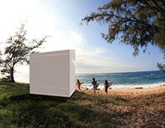 Вложение 495 В таком ракурсе перед нами предстаёт нечто вроде гигантской пачки сигарет. Под её "крышечкой", однако, можно жить. И довольно комфортно (иллюстрация с сайта paco.bz). Гладкий белый куб со сторонами в три метра выглядит загадочно. Памятник стиральной машине? Дизель-электростанция? Окон незаметно, но есть одна дверь. Мини-склад? Нет, всего лишь один из самых компактных на планете коттеджей, призванных принести уют в те уголки природы, где возведение капитального жилья невозможно или невыгодно. Новый дом достаточно трудно классифицировать. Вообще-то он относится к мини-коттеджам промышленного изготовления, которые нужно только привезти на место и поставить. Но по размерам и виду это скорее "камера хранения на одного" (если не сказать "саркофаг"), нежели полноценное жилище. С другой стороны, новичок не обладает мобильностью прицепов-дач и кемперов. В путешествие его не возьмёшь. Да и не на каждом грузовике перевезёшь. Вложение 496 Размещение первого экземпляра коттеджа-куба внутри здания сбивает с толку. Но это всего лишь выставка (фото с сайта treehugger.com). Получается, что Paco, так назван этот странный кубик, занимает некую промежуточную позицию между домами на колёсах и коттеджами привычных размеров. Вложение 497 Нагасака – не единственный, кто приложил руку к Paco, но Дзё можно считать главным автором проекта (фото с сайта paco.bz). Автор этого шедевра минимализма — Дзё Нагасака (Jo Nagasaka) из японской компании Schemata Architecture (хотя в создании прототипа участвовали и другие фирмы, и приглашённые специалисты). Paco обращает на себя внимание не только лаконичностью формы, но и подъёмной крышей, в центре которой расположено единственное окошко с матовым стеклом. Оно поставляет внутрь естественный свет. Под крышей висит гамак, так что после открытия "шкатулки" (имеется сервопривод) её обитатель получает возможность обозревать окрестности, наслаждаясь каким-нибудь морским бризом. Внутренняя площадь коттеджа составляет почти 8 квадратных метров. Так что по компактности мало какой дом может поспорить с Paco. Быть может, только британо-германский Micro-Compact Home. Кажется, в таком и не развернёшься. Разве что переночевать можно спокойно. Вложение 498 Основные материалы этого домика – древесина, полимеры и сталь (иллюстрация с сайта paco.bz). Но как разместить многое на скромной площади, специалисты Schemata Architecture знают не понаслышке. Ведь именно они в своё время вписали в отведённое под стройку тесное пространство дом без угла. Так и здесь: Paco – это не просто крыша над головой. Дом обладает миниатюрным подвалом, в котором есть место для хранения вещей. И в нём же спрятаны выдвижные туалет и душ. Тут имеются раковина и выдвижной столик. На свободном пространстве можно расставить лёгкую мебель по вкусу. А из "прогресса" добавить, к примеру, портативный холодильник и кондиционер. Вложение 499 Принцип исчезающей в полу мебели или вездесущих потайных шкафов далеко не нов. А, к примеру, в Китае, с такой начинкой даже гостиницу построили (иллюстрации с сайта paco.bz). Мечта создателей домика – сделать его полностью свободным от коммунальной инфраструктуры. В принципе, тут нет ничего неразрешимого: организовать сбор дождевой воды или добычу её из скважины. Наладить очистку сточной воды для повторного использования для слива унитаза. На крыше смонтировать солнечные батареи… И хоть н