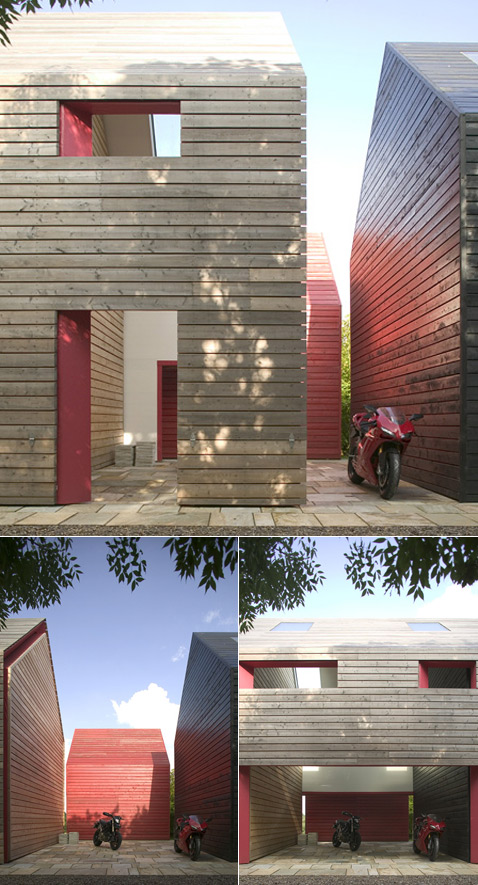 Динамическая архитектура, то есть всевозможные дома-трансформеры, меняющие облик фасады и тому подобное, до сих пор в большинстве случаев решала лишь эстетическую задачу. Практической пользы от введения в дома "оживших" элементов было мало. Новый же коттедж не просто необычен. Его необычность – функциональна (фото Alex de Rijke). Перед нами тот случай, когда внешность оказывается обманчива. Посмотришь на это сооружение издали — ну просто сарай какой-то. Окна-бойницы, некрашеные брёвна, и вообще — примитивная форма. Но стоит нажать кнопку, и перед зрителями обнажается потайная начинка: разделённый на несколько частей уютный и светлый дом с большой гостиной-оранжереей. Британская компания dRMM Architecture потратила несколько лет на разработку и возведение в Суффолке (Suffolk) необычного коттеджа, названного "Скользящий дом" (Sliding House). Заказчик Росс Рассел (Ross Russell) желал получить нечто не слишком вычурное, но в то же время передовое и инновационное. Чтобы было удобно, необычно и экологично. Так и вышло. Некоторое время назад счастливый новосёл въехал в уникальную постройку, а 3 марта 2009 года Алекс де Рийке (Alex de Rijke), глава dRMM, представил Sliding House в Лондоне на выставке и конференции по "зелёной" архитектуре Ecobuild. Вложение 685 Если бы не стеклянная стена с этой стороны дома, сооружение вполне сошло бы за одну из 4 731 567 традиционных сельских построек Англии. А может быть, за одну из 6 052 126 (фото Ross Russell). Своим коллегам по цеху и гостями де Рийке рассказывал, как инновации и полёт творческой мысли могут быть соединены в энергосберегающих зданиях "малых форм". И "зелёная" тема была привязана к Sliding House неслучайно. Этот коттедж его основные авторы – сам Алекс, а также Джоана Гонсальвес (Joana Pestana Lages Goncalves) – придумали не ради эпатажа. Хотя, надо признать, съезжающий дом впечатляет, когда видишь его в действии. Sliding House намеренно "нарисован" в стилистике местных ферм и потому издалека напоминает какой-нибудь сарай или амбар. Фактически Sliding House — это три отдельных строения, поставленных на общий бетонный фундамент: основной дом, флигель и гараж. Первые два выстроены в одну линию (вдоль конька крыши), а гараж смещён вбок так, что почти соприкасается с ними углами. Между этими тремя блоками образовался небольшой внутренний дворик. Изюминка же дома — его внешняя подвижная оболочка. Вложение 686 Последовательность трансформации Sliding House. В одном крайнем положении дополнительные стены (а они довольно толстые) сохраняют тепло и придают дому "защищённый" вид, в другом – создают навес над площадкой перед застеклённой частью коттеджа. Промежуточных же вариантов не счесть (фотографии Alex de Rijke). Помимо основных стен трёх упомянутых блоков всё сооружение прикрывает сверху дополнительная крыша, объединённая с дополнительными же стенами. В них также выполнено несколько проёмов под окна и двери, только вот вырезы не обязательно оказываются привязанными к настоящим дверям и окнам. Ведь эта "крышка пенала" может сдвигаться вдоль основной оси здания на многие метры, причём способна останавливаться в произвольном положении. Эффектно. Хозяин может на свой вкус, сообразно погоде, настроению, времени суток или года, менять степень открытости дома. Превращать его в крепость, сохраняющую тепло, или подставлять ту же гостиную-оранжерею (она вызывает ассоциации с теплицей из-за полностью стеклян