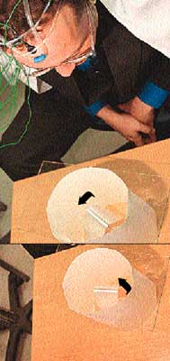 Вложение 518 Вертушка под взглядом Вадима двигается против часовой стрелки, совершая полный оборот за 24 секунды (движение показано черной стрелкой). «Комсомолка» пригласила феномена из Новосибирска в Москву, чтобы провести эксперимент по проверке необычных способностей человека Светлана КУЗИНА, Фото Михаила КАЛИТНИКОВА. — 02.12.2004 Сила мысли - Я не сомневаюсь в том, что некоторые люди обладают «силой мысли», - говорит доктор медицинских наук, профессор, руководитель Центра восстановительной медицины Центральной клинической больницы МПС Вячеслав Звоников. - Но я за двадцать лет видел лишь двух - Нинель Кулагину и Валерия Авдеева, которые еще при советской власти удерживали в воздухе легкие предметы. Поработать с ними тогда не довелось. Нинель уже умерла, Валерий уехал в США - что там делает, не знаю. А новые сильные уникумы не объявлялись. Вот тут профессор поторопился. В прошлом году один уникум сам пришел в «Комсомолку», чтобы убедить: он без всяких фокусов умеет перемещать предметы взглядом. Житель Новосибирска Вадим Кузьменко принес в редакцию аквариум, налил воду и пустил по ней плавать шарик от пинг-понга. Под пристальным взглядом Вадима шарик сдвинулся с места и за 37 секунд проплыл по воде 51 миллиметр. Мы замеряли. О чем и было рассказано в номере от 28 марта 2003 года. С этим уникумом мы и решили познакомить профессора. Умер и воскрес Свою жизнь Вадим Кузьменко делит на две части: до и после 33 лет. До «возраста Христа» выучился на инженера-электрика. Женился. В 1996 году машина, в которой ехал Вадим, столкнулась с другой лоб в лоб. Он головой пробил ветровое стекло и вылетел на дорогу. Сердце остановилось, врачи констатировали клиническую смерть. Но с помощью дефибриллятора им удалось запустить «мотор» вновь. Вадима без сознания увезли в больницу, где он очнулся через сутки и... ушел домой, считая себя здоровым. Сломанные ребра и ключица быстро срослись. Травма головы никак не напоминала о себе. Стал преуспевающим менеджером в крупной торговой фирме. Чудеса начались через пять лет после катастрофы, когда Вадиму исполнилось тридцать три. На даче с ребятами играл в настольный теннис. - Шарик отлетел со стола и попал прямо в бочку с дождевой водой, - рассказывает Кузьменко. - Я взглянул на него, и он поплыл в мою сторону. Посмотрел еще раз, и шарик поплыл в противоположном направлении. Дома Вадим решил повторить опыты. Под его пристальным взглядом колыхнулись стеклянные висюльки бра. Жена Ольга запаниковала: только чертовщины в доме не хватало! Однако Вадим супругу успокоил: любые перемещения возможны только после долгой концентрации, случайности вроде «полки на голову» исключены. Способностями обладает Лучший друг Вадима Владимир, узнав о его таланте, настоятельно рекомендовал показаться ученым. Вместе записали первую демонстрационную кассету и отправили в Москву - специалисту, много лет изучающему «аномальщину», - президенту Фонда парапсихологии им. Л. Л. Васильева, главному врачу ЗАО «Клиника неврозов», профессору Андрею Ли. В ожидании результата Вадим решил продемонстрировать телекинез журналистам «Комсомолки» в Новосибирске. А потом приехал и в Москву. - Но как ты это делаешь? - с удивлением спрашивали мы, глядя на двигающийся шарик. - Закрываю глаза, - объяснил Кузьменко, - представляю, как должен двигаться или крутиться предмет. А п